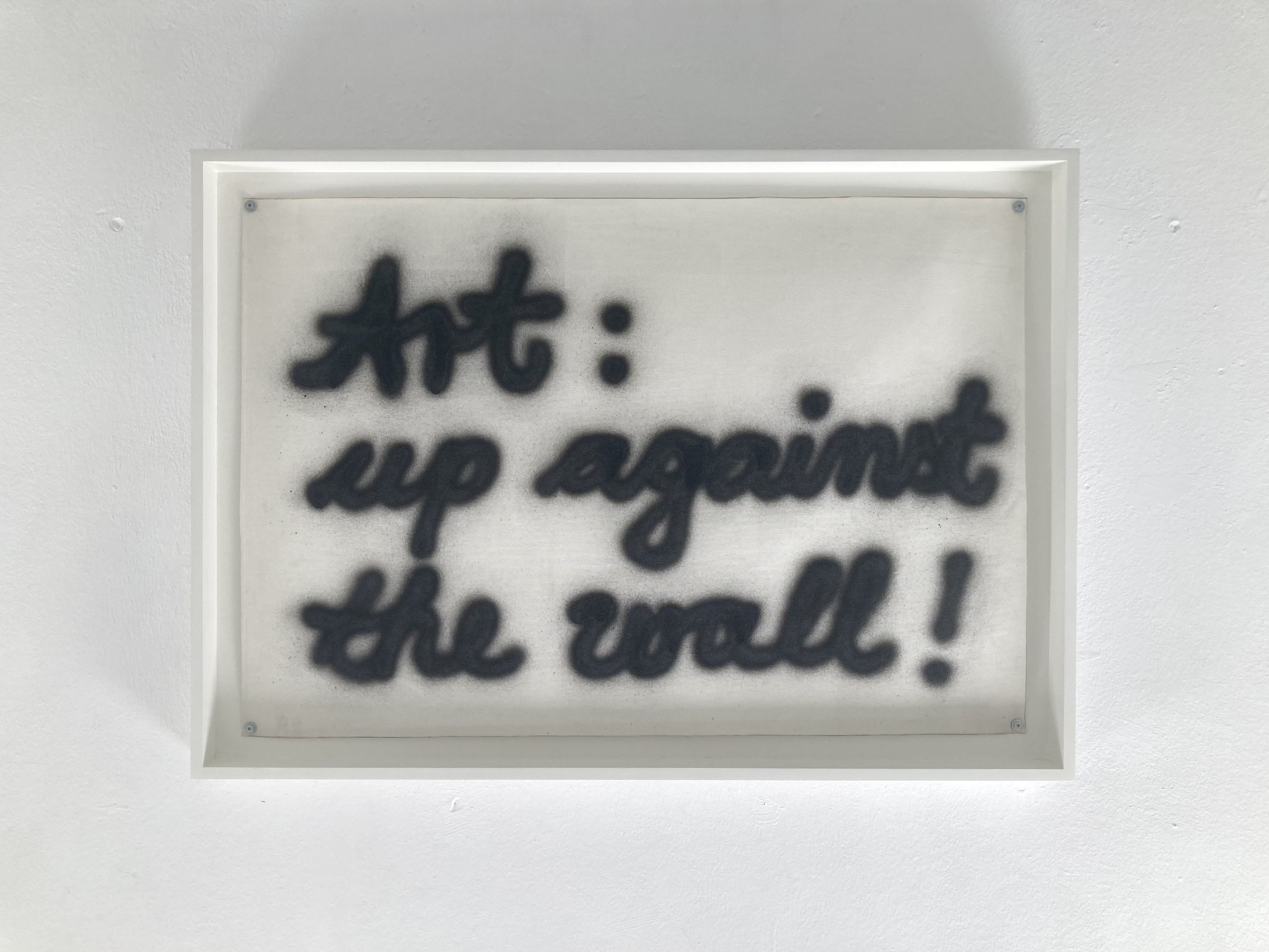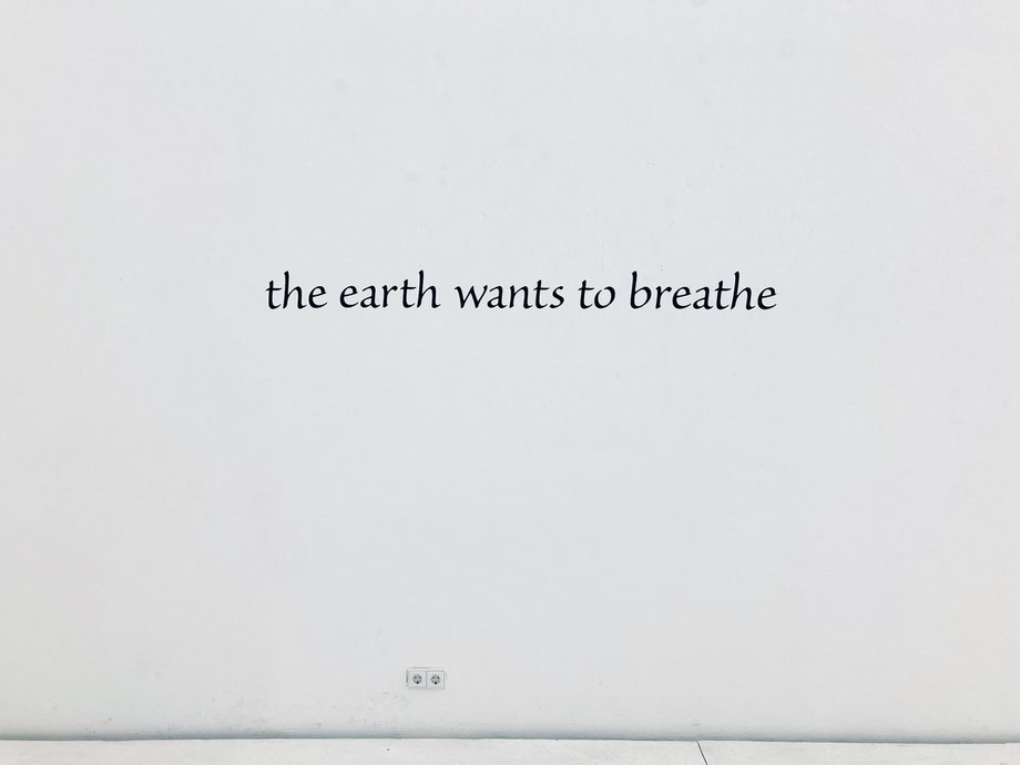 MYRA BROOKLYN, the earth wants to breathe, 1983/2020, adhesive letters in black, digital print, 15 x 195 cm