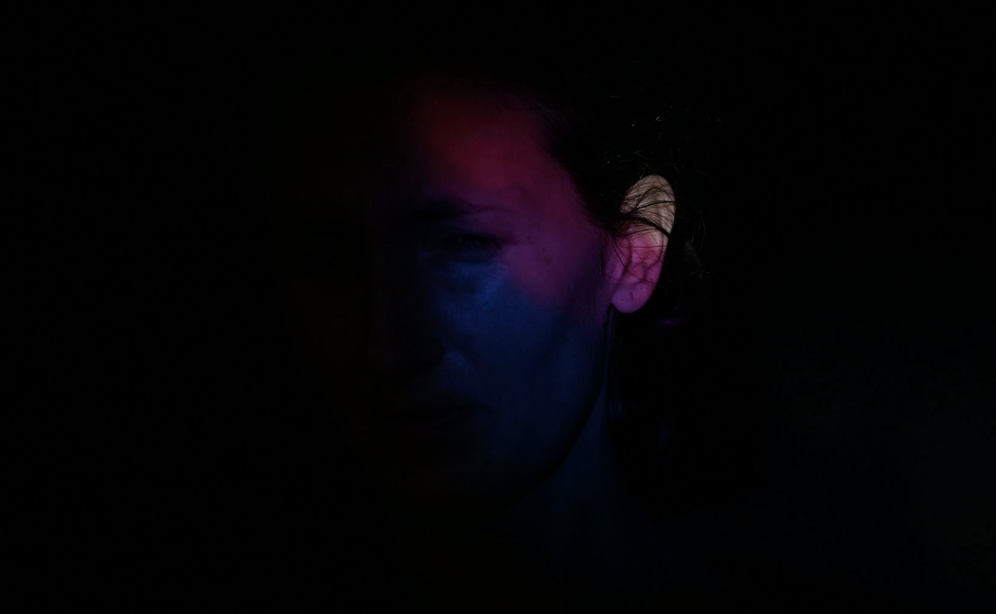 Das Video SeeN (2020) zeigt die Künstlerin, die durch ein grelles Licht kaum etwas sehen und die Augen öffnen kann.